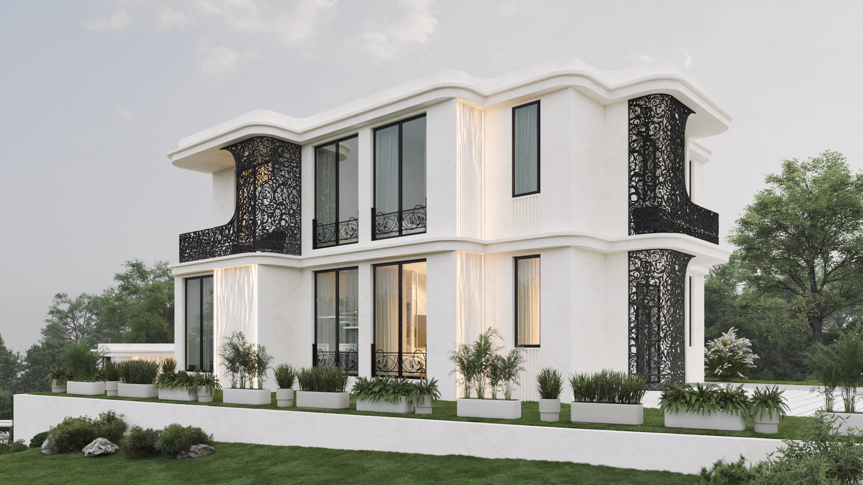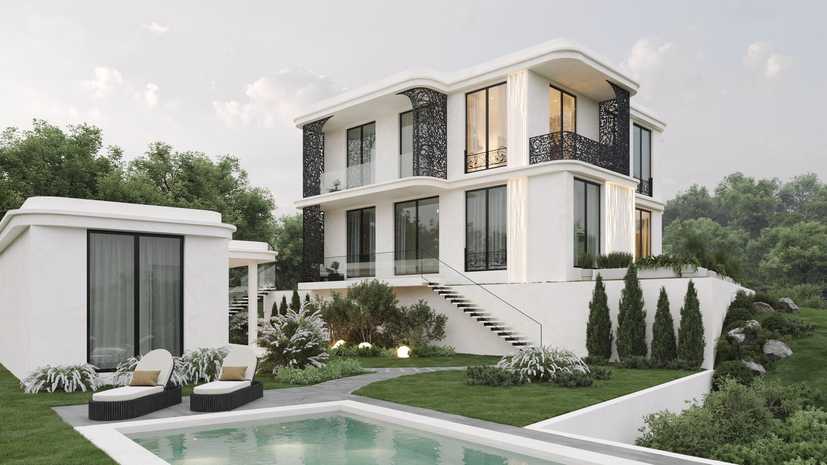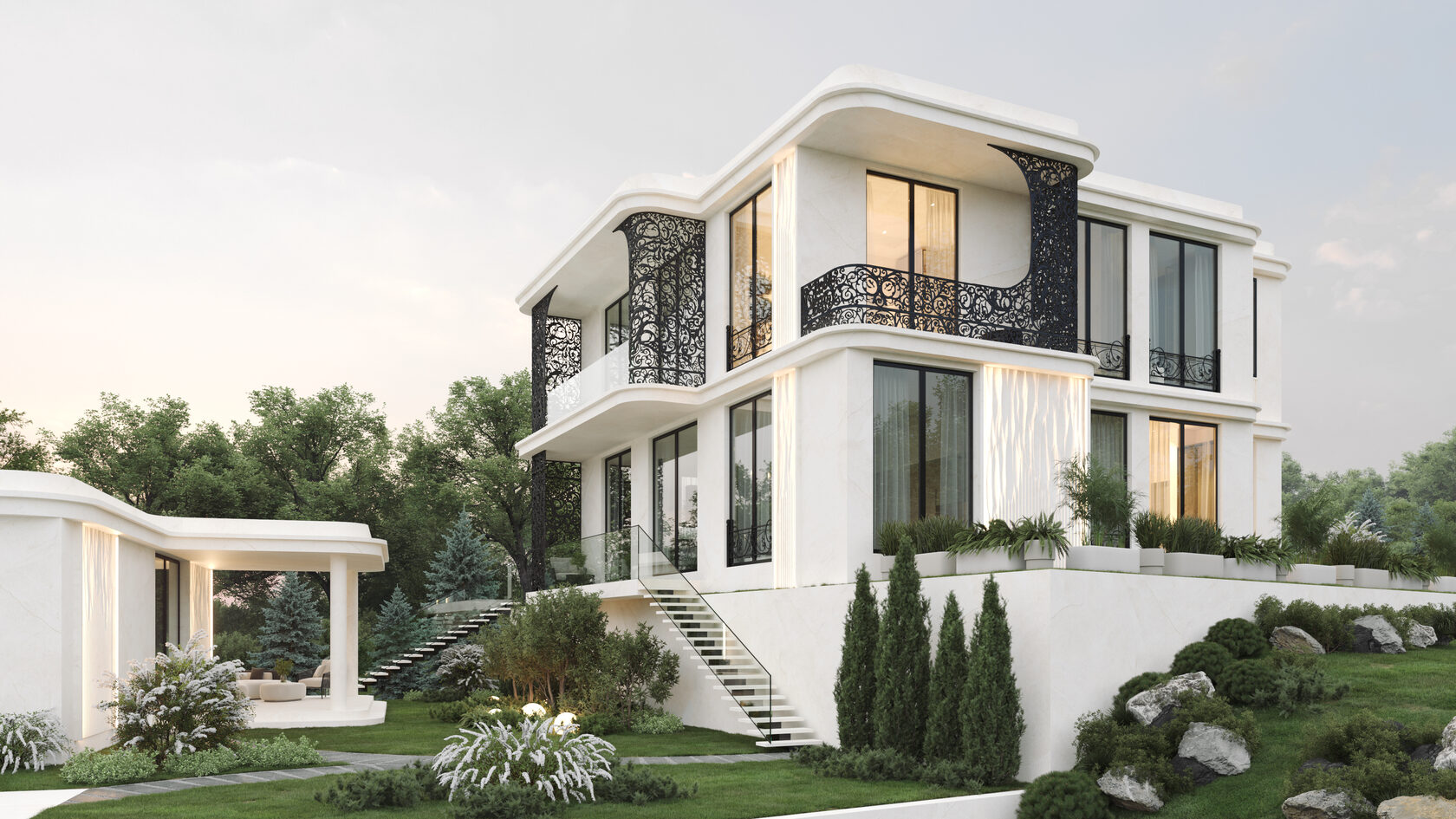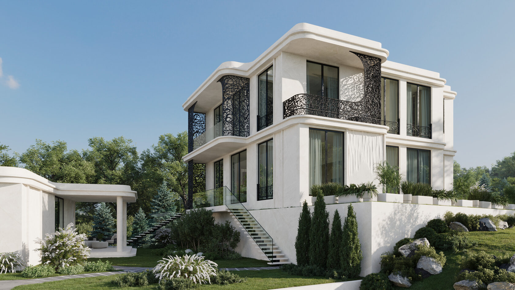 Каждая из вилл выполнена в аутентичном стиле, с фасадами из натурального камня иранского известняка, великолепно сочетающегося с диким камнем. Крыши покрыты натуральной керамической черепицей, придающей зданиям особенный шарм.